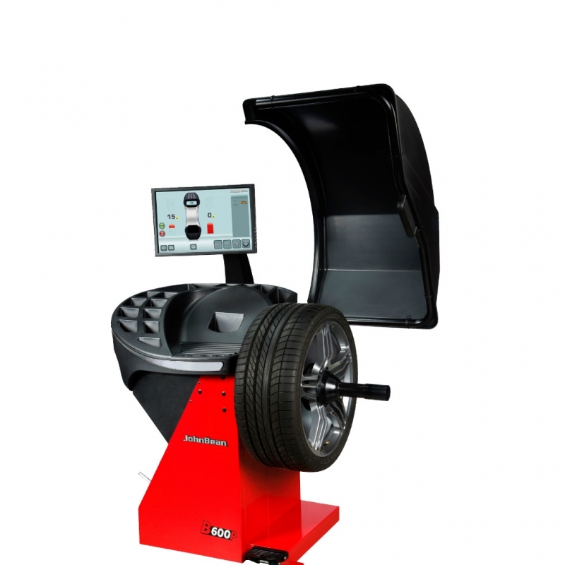B600 é o modelo da nova equilibradora de rodas de veículos ligeiros e comerciais, muito fácil de operar, de ciclo extremamente curto (4,5 seg.)